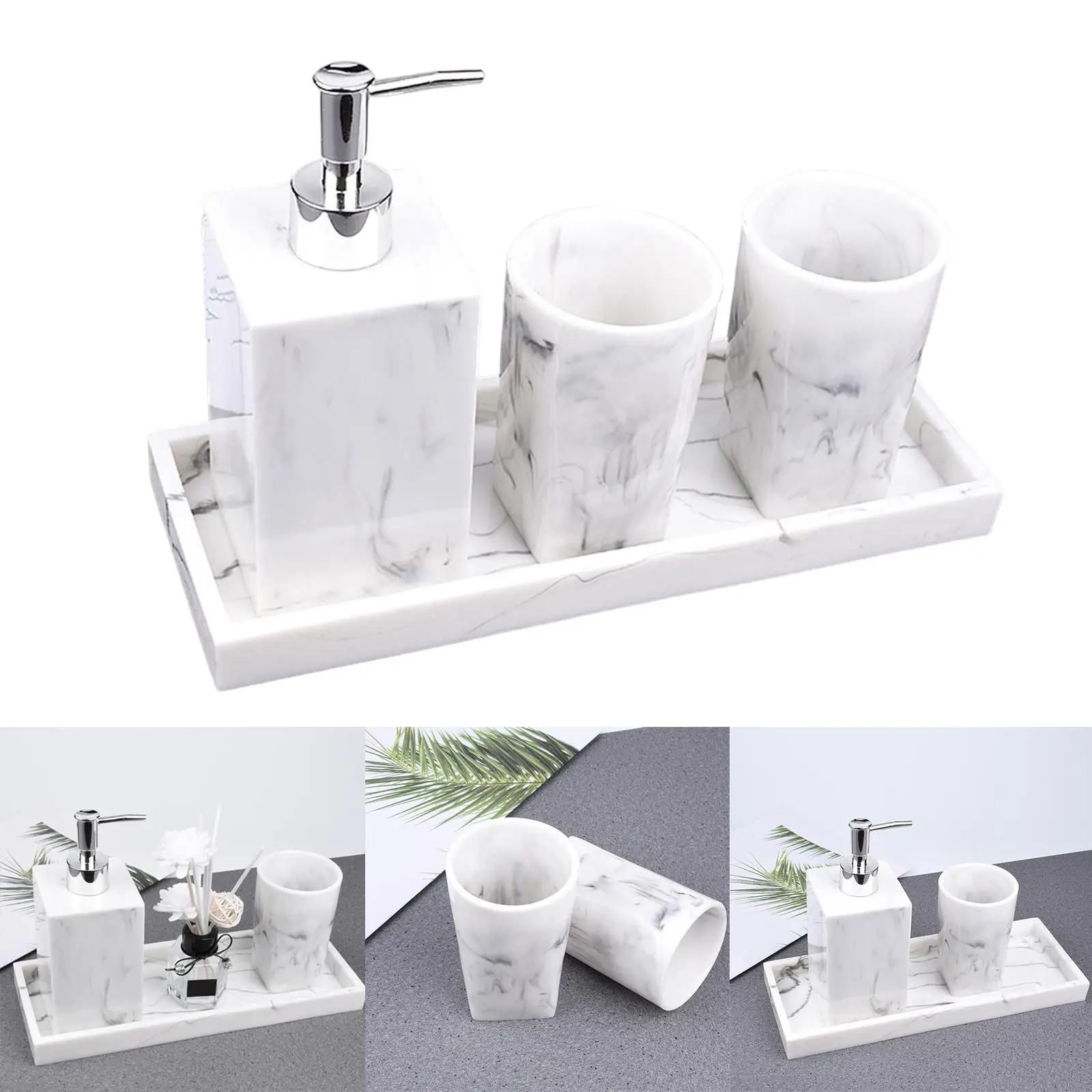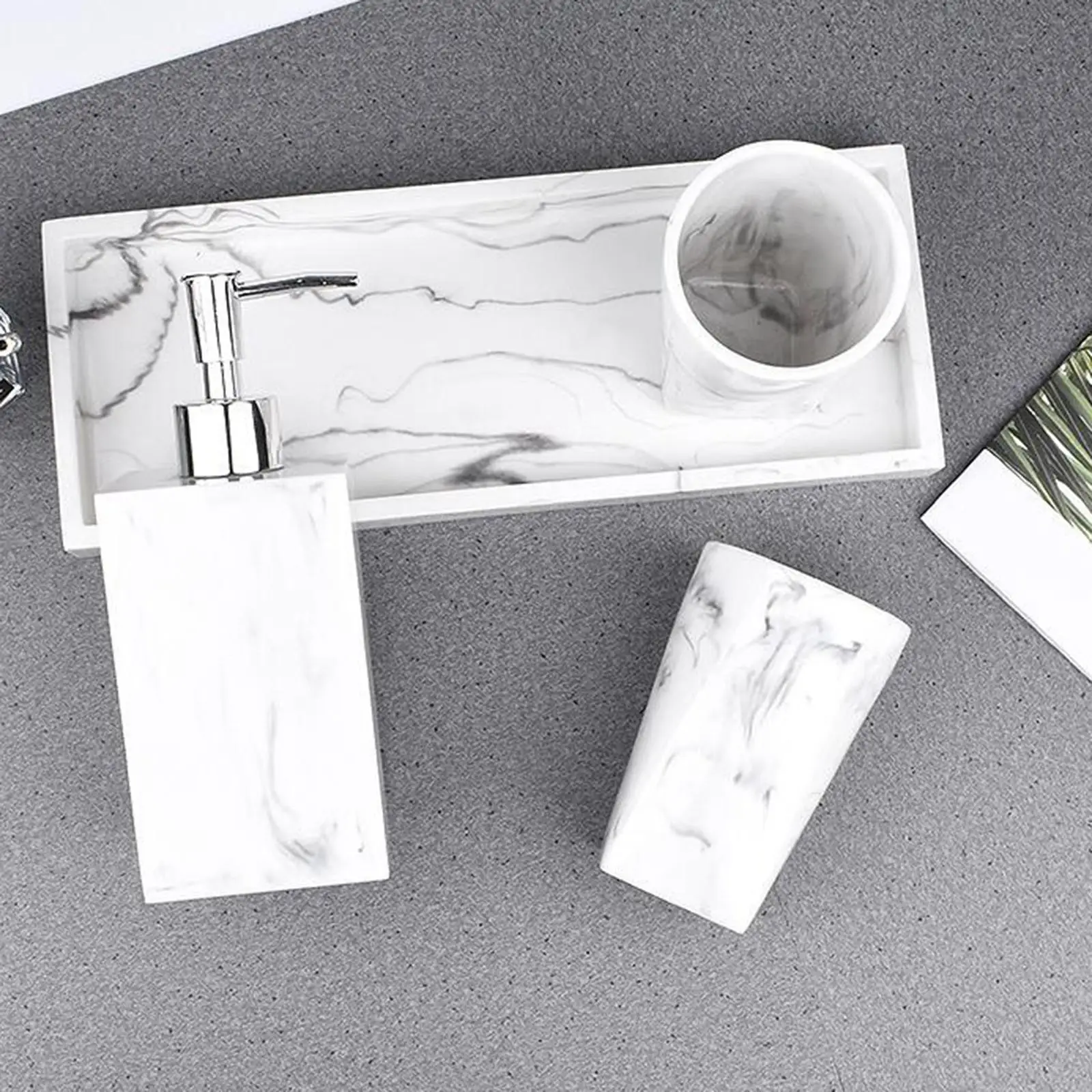 Bathroom Accessories Set, Shampoo Bottles Marble Texture Mouthwash Cup