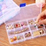 Grids Plastic Clear Organizer with Cover Box for Jewelry Earrings Screw Nails