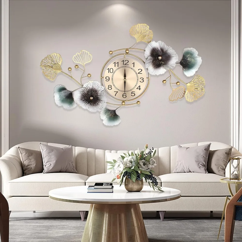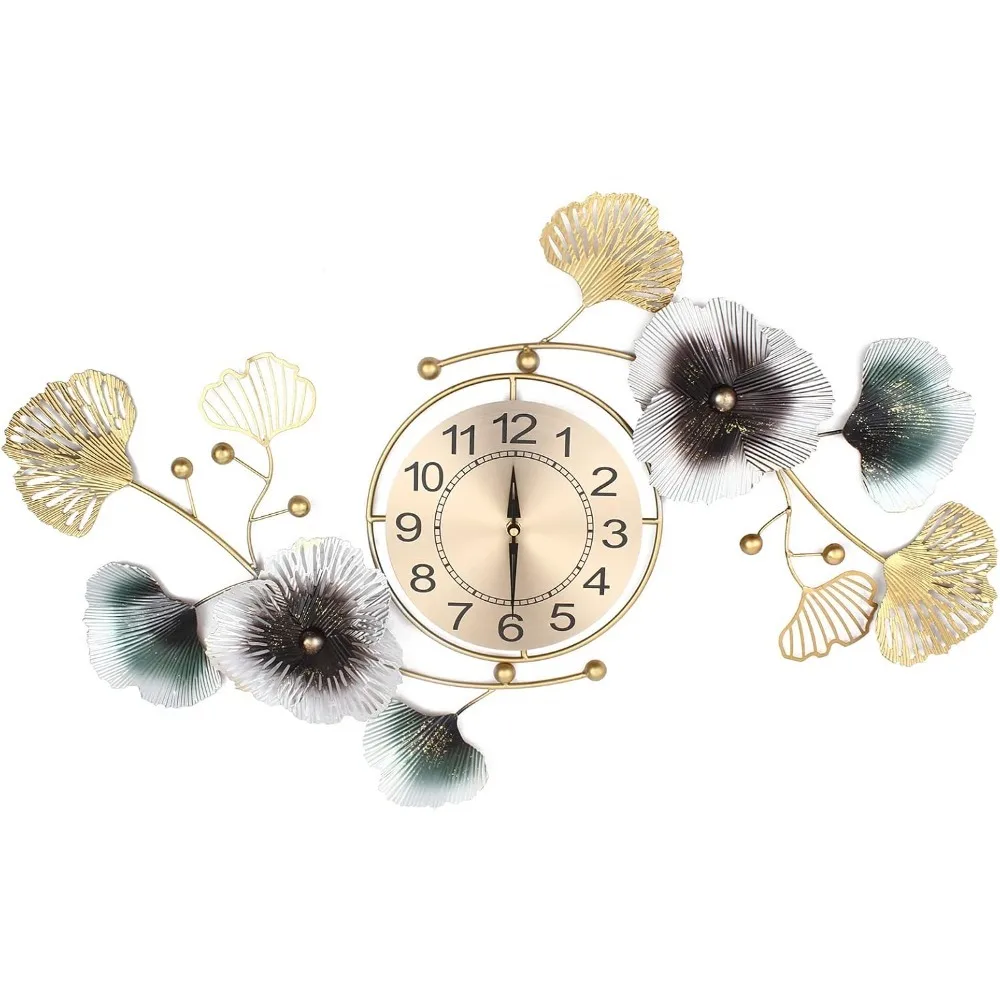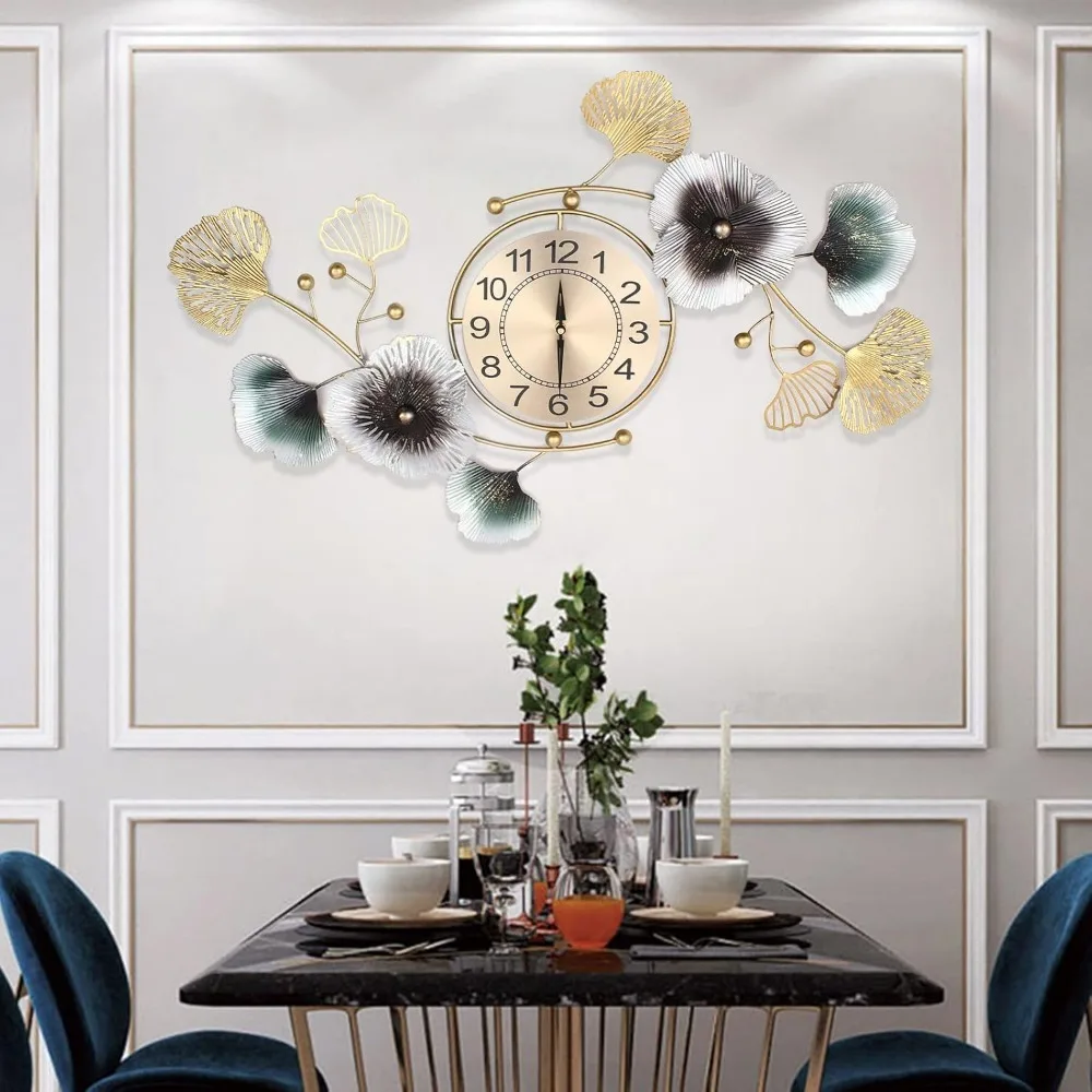 Large Decorative Wall Clock Light Luxury Atmosphere Ginkgo Leaf Quartz Clock Mute DIY Large Wall Clock Wall Decoration