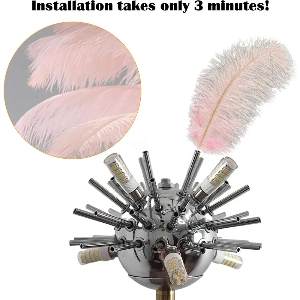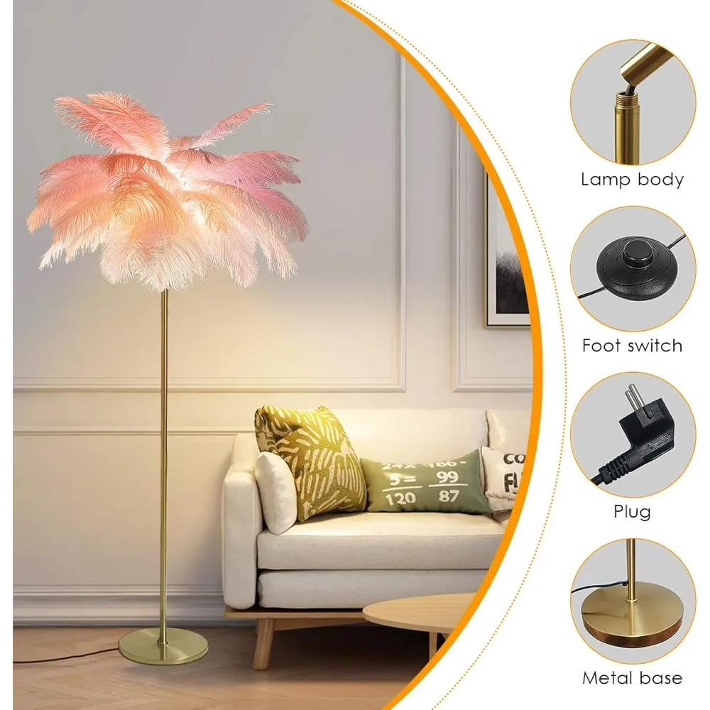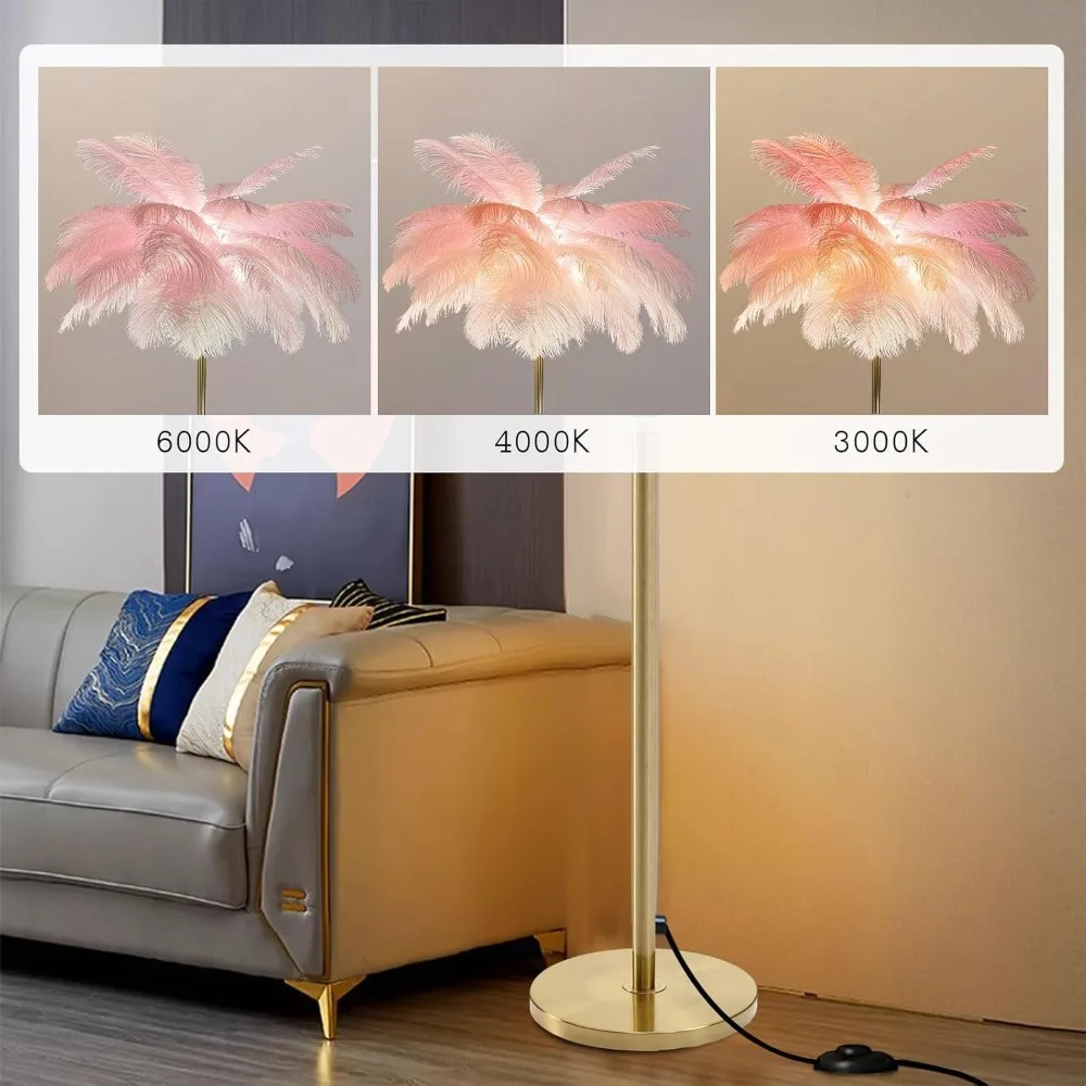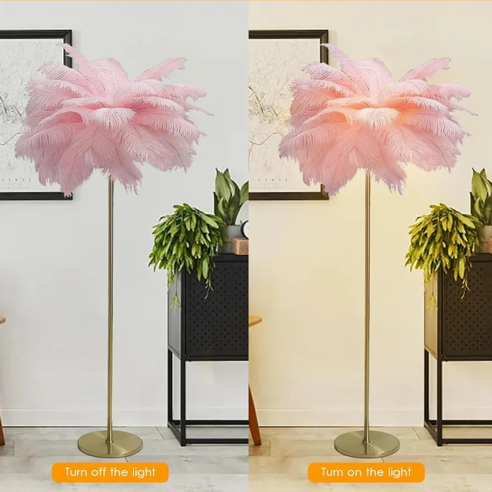 Ostrich Feather Lamp Feather Floor Lamps, 3 Colors Led Bulb, Bedroom Standing Lamp, Decorative Lamp for Living Room Bedroom