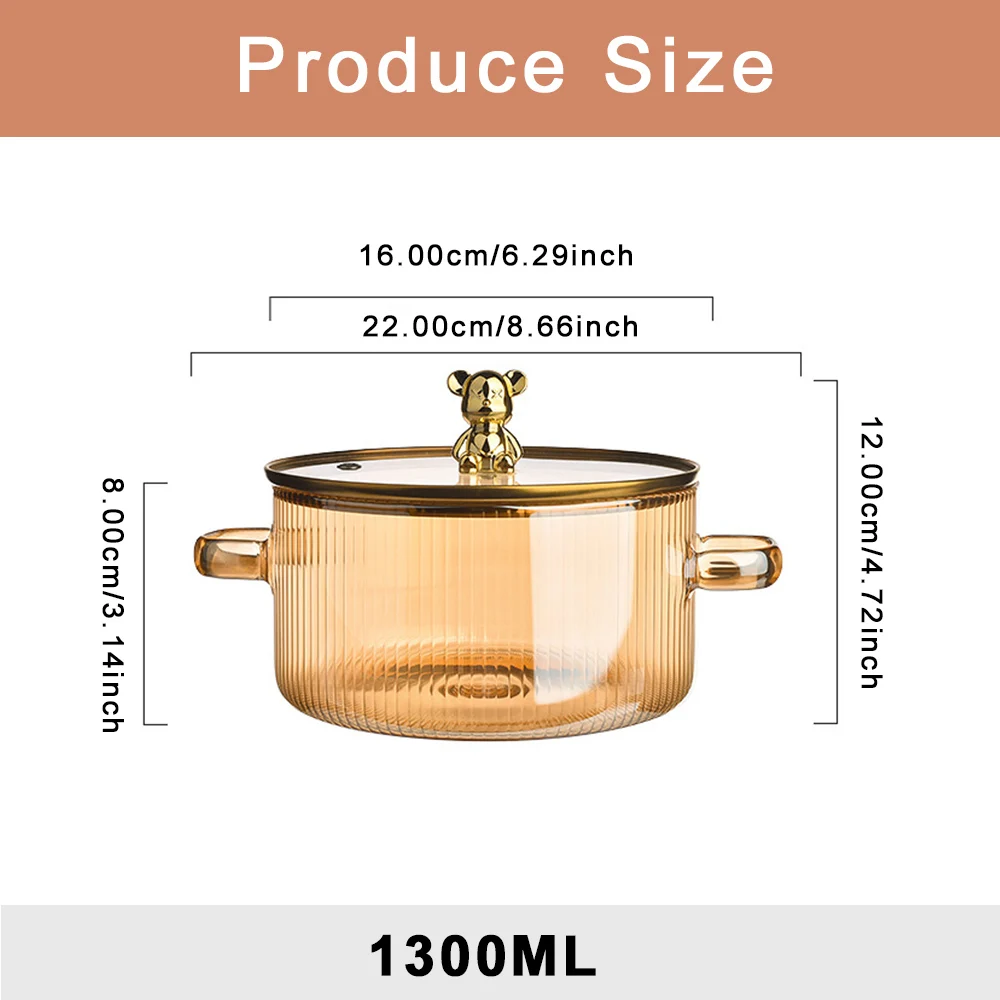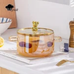 Home Kitchenware Small Bear glass soup boiler stove cooking pot with lid heatproof glass saucepan amphora instant noodle pot saucepan kitchenware